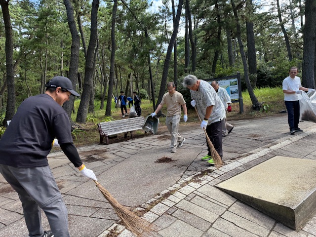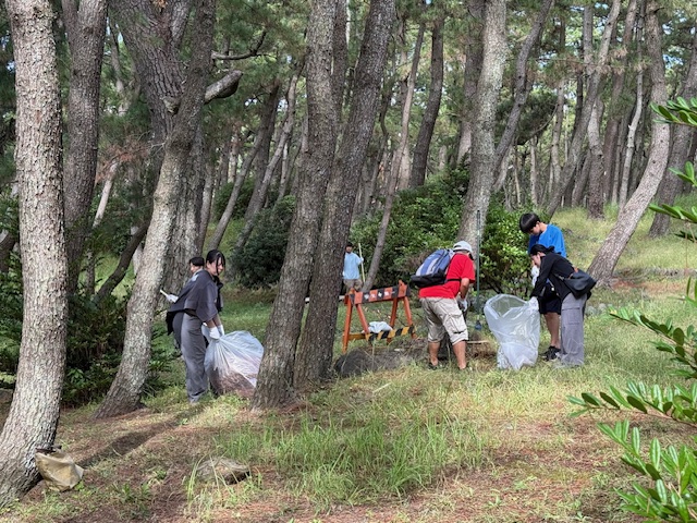 千本松原の松の保全のため、松の根元に落ちている松葉を中心に清掃活動を行いました。