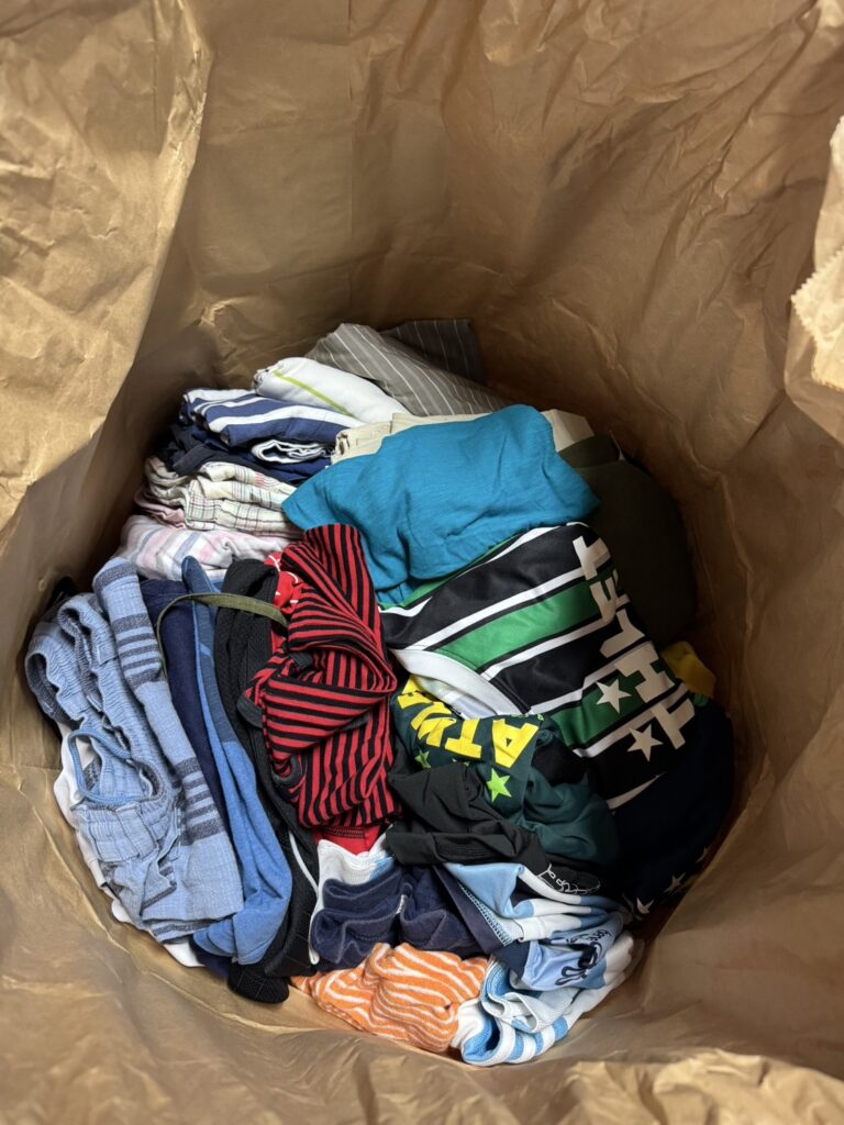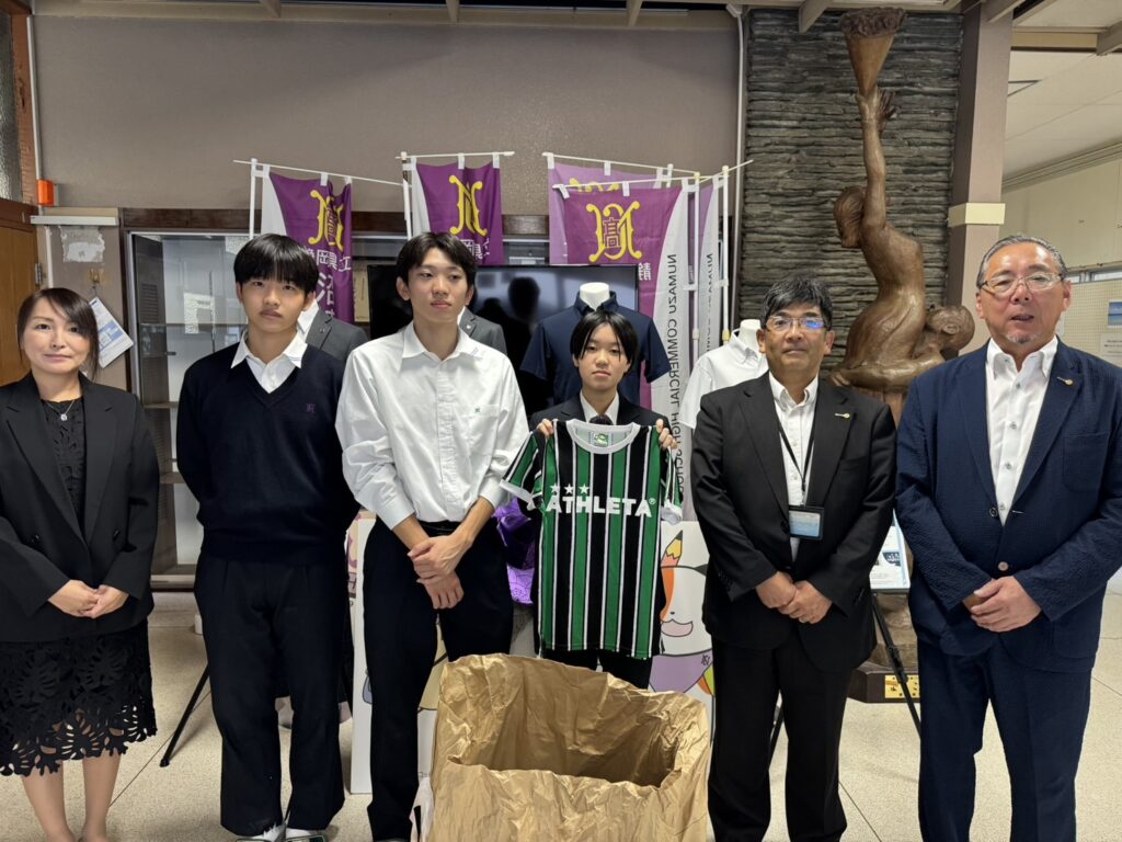 古着deワクチン、沼津RCが提唱している沼津商業高等学校インターアクト部にも協力を依頼し、1袋分の古着が回収できました。山本会長、塚本幹事、小暮インターアクト委員長が学校を訪問し受け取りました。高校生たちの協力に感謝!