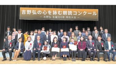 富士市ゆかりの日本を代表する詩人、吉野弘氏の心を詠む朗読コンクール全国大会を実施。市内だけでなく全国に吉野弘の暖かな詩を届ける。今回は生誕100年特別企画とし、紺野美沙子さんをゲストに迎え開催。予選には沖縄から北海道まで180人の応募があり、その中からジュニア7人、学生9人、一般12人の28人が進出しました。