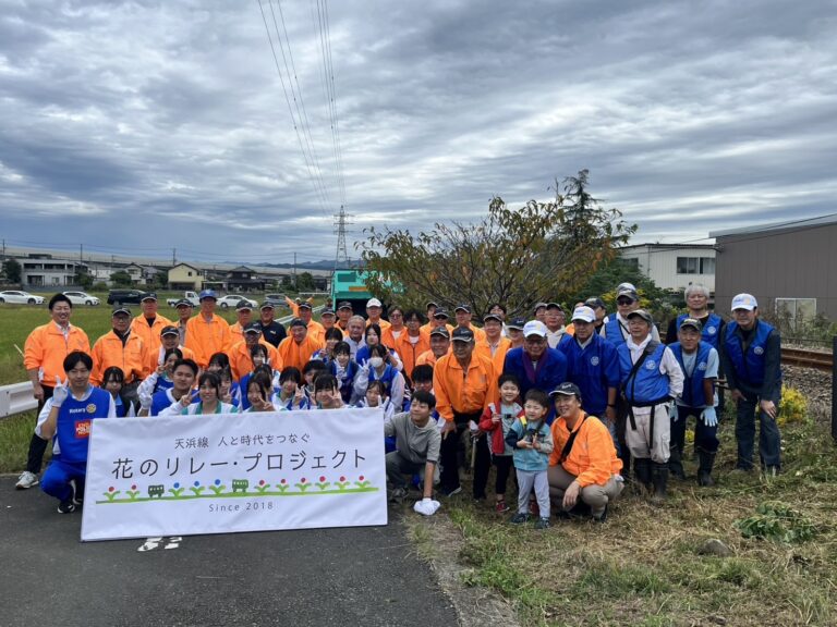 花のリレープロジェクト 沿線草刈り 実施日 2025年10月19日 天竜浜名湖鉄道沿線にて植栽した桜の木の成長を促す為浜北ロータリークラブ様と合同で沿線草刈りを行いました。草刈り後、菜の花の種も蒔いて沿線を色鮮やかに出来るようにしました。