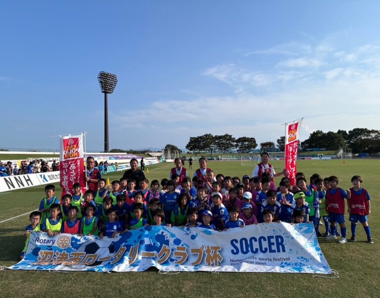 実施日 2025年9月27日 J3アスルクラロ沼津の前座試合として、小学2年生以下を対象としたサッカー大会を開催しました。当日は天候にも恵まれ、8チーム約90名の参加者があり、保護者約100名の応援のなか熱戦が繰り広げられました。大会終了後はスタジアム外の出店ブースで、当クラブ会員、加藤学園高校IACの生徒やアスルクラロの選手も参加して、ポリオ募金活動を実施しました。
